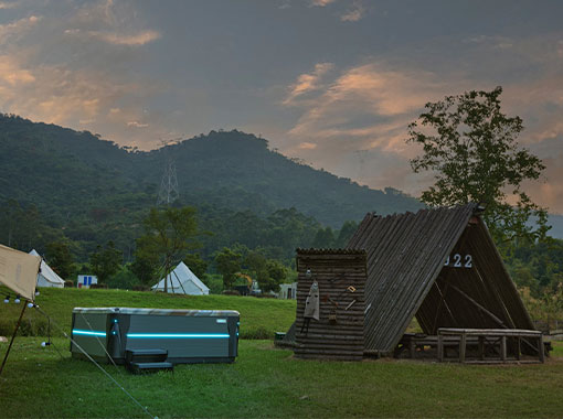At a cozy campsite, a hot tub provides a luxurious retreat after a day of outdoor adventures. Surrounded by nature, campers can soak in warm, bubbly water, enjoying the stars above while wirelessly streaming their favorite music via Bluetooth. The hot tub’s ergonomic design and therapeutic massages ensure a relaxing end to an exhilarating day in the wilderness.