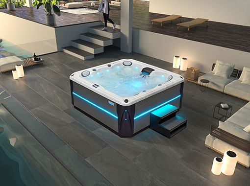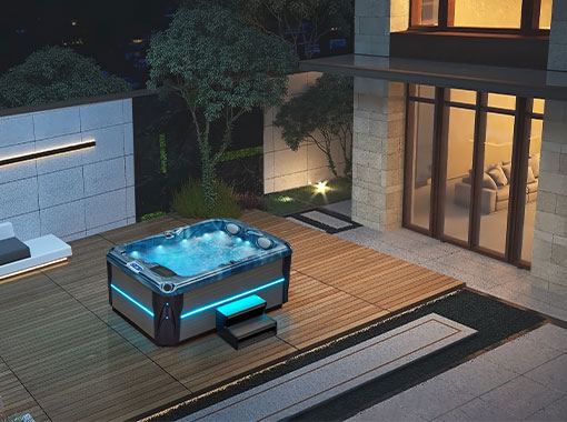 In the secluded setting of a villa courtyard, a hot tub becomes a luxurious sanctuary, surrounded by lush greenery and private space, offering an intimate and exclusive soaking experience.