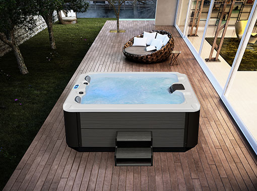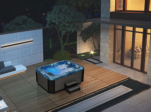 An outdoor hot tub invites you to bask in the wonders of nature, offering an expansive view and the fresh air of the outdoors, enhancing your soaking experience with a sense of freedom and rejuvenation.