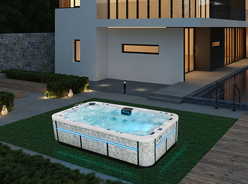 A hot tub in the courtyard provides a private and spacious area for family and friends to gather and enjoy a luxurious spa experience together, creating lasting memories and bonds.
