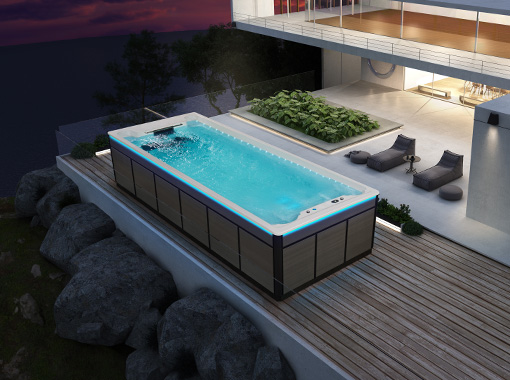 Placing an Infinipool on a hotel balcony offers guests a private, luxurious swimming experience with panoramic views, enhancing their stay with a unique and refreshing amenity.